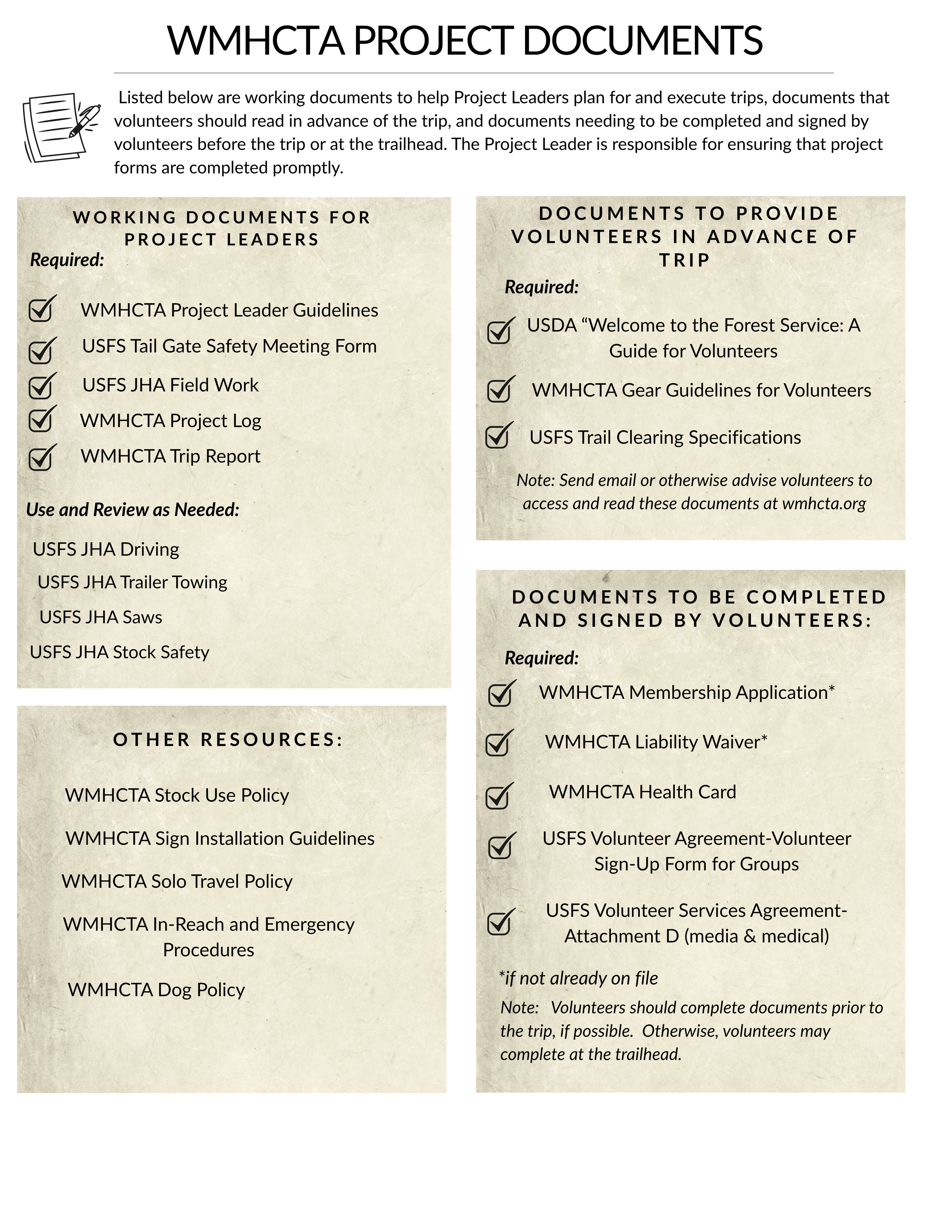 • WMHCTA Project Leader Guidelines